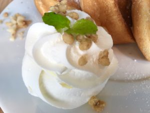 甘さ控えめな生クリームと、ナッツが良いアクセントに。